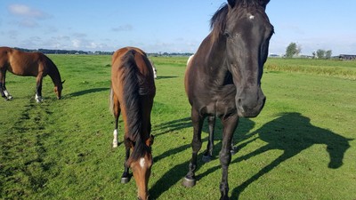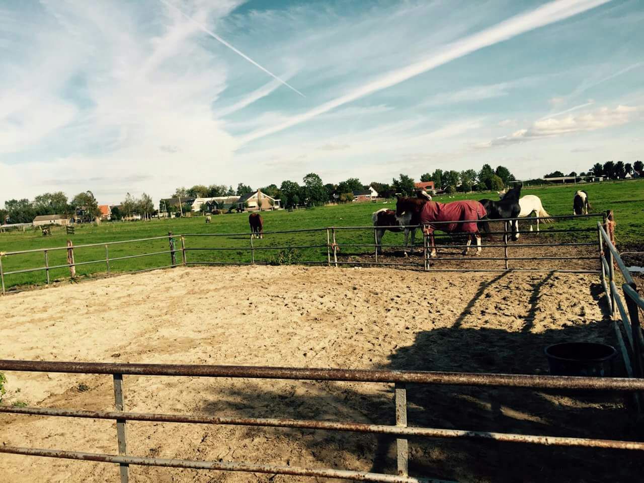 In de zomer staan alle paarden en pony’s heerlijk op het land.