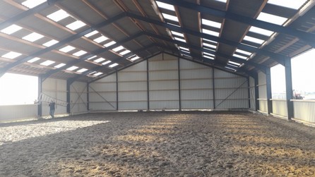 We hebben de beschikking over een overkapte rijbak wat in de zomer verkoeling brengt en met regen e.d. lekker droog kan rijden!!